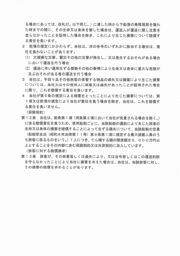 船舶について 全長11メートル全幅2.6メートル2.9トン最大搭載人員15名(内船員3) その他設備 GPSプロッター レーダー 個室トイレ ドリンクホルダー多数 USB付ラジオ 自動膨張式ライフジャケット お子様用ライフジャケット(各サイズご用意しております) その他法廷備品一式 一般不定期航路 登録通知書 内航一般不定期航路事業 国土交通省 中部運輸局 中運海旅第113号 東海一不第23号 安全統括管理者1名 運行管理者3名