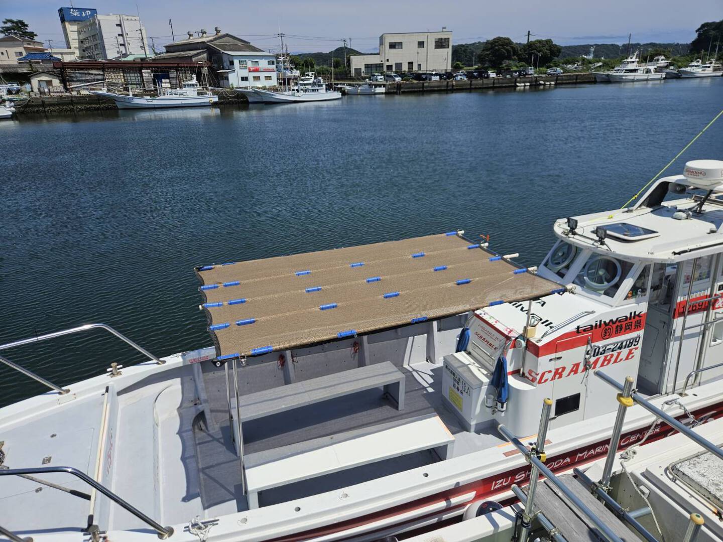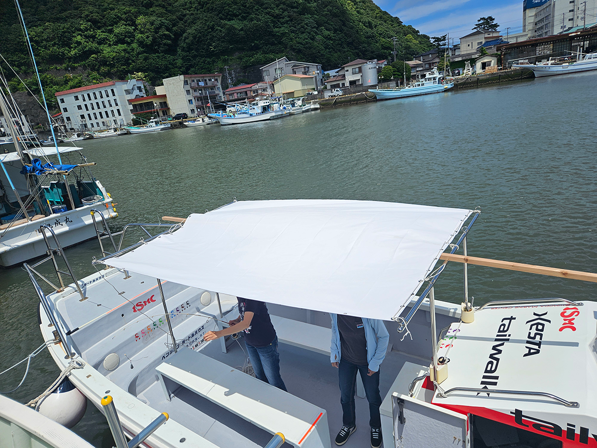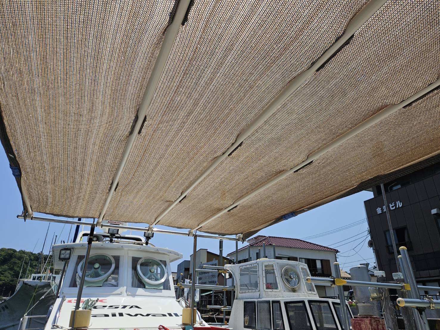 ◆夏の暑さ対策で船前部、後部に日よけを設置します(6月~10月)。