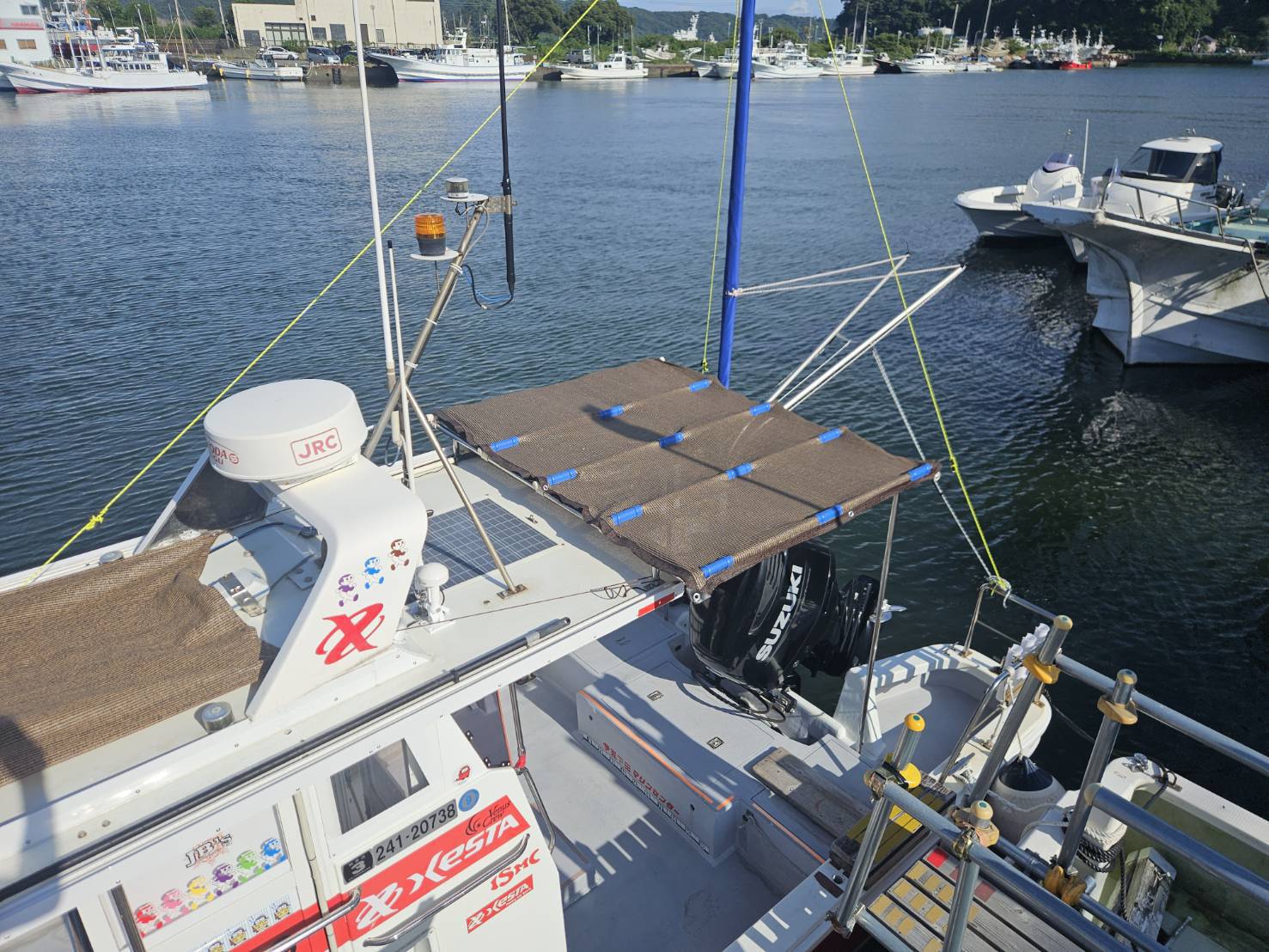 ◆夏の暑さ対策で船前部、後部に日よけを設置します(6月~10月)。